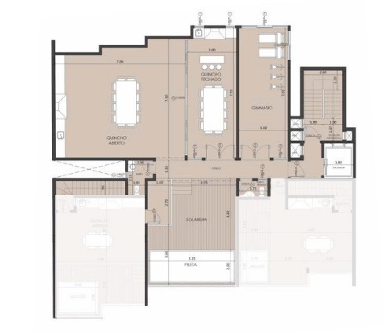 Hall de acceso, Quincho, cubierto Terraza, con Parrilla, Gimnasio, Piscina descubierta con Solarium, 17 Residencias con cocheras.