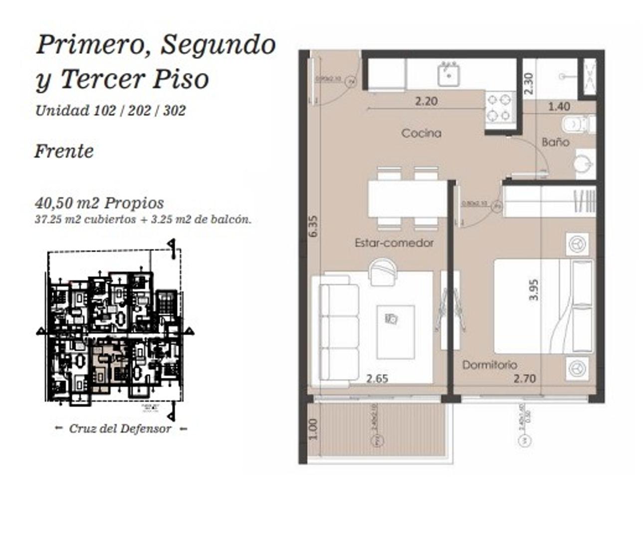 Departamentos de un dormitorio desde 41.50 m2, cocina integrada y equipada, dormitorios con placard, baños completos, todos los ambientes ventilados, planta de cocheras y amenities.