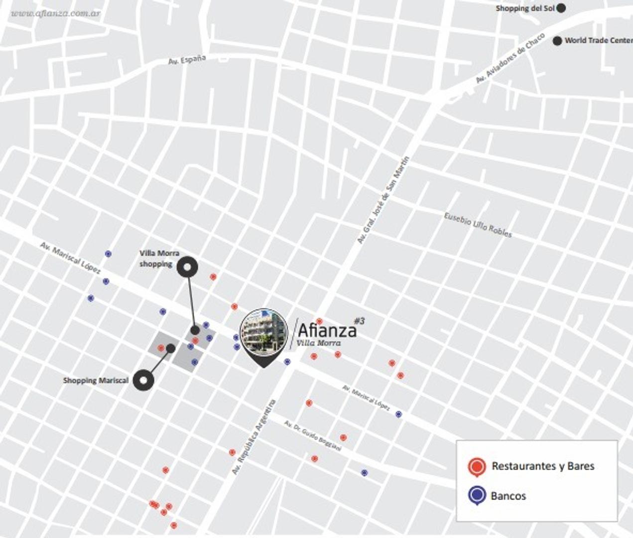 Ubicado en el barrio de Villa Morra, una de las mejores zonas de Asunción del Paraguay, centro financiero, universidades, escuelas, shopping, hoteles, gastronomía, etc.